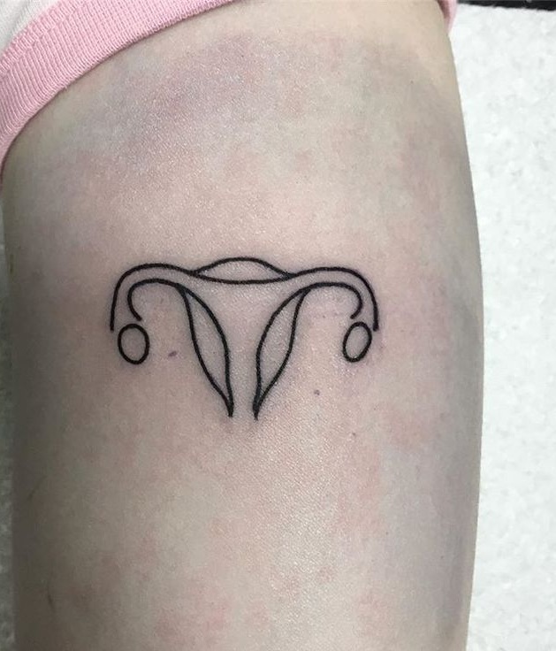 Another take on the protest motif, this clean line piece features one fallopian tube raising the middle finger. Its message is direct and witty, but the anatomical structure keeps it grounded in reality. This one’s ideal for those who want minimal design but maximum impact. It’s feminist rage served with a smirk—equal parts protest and poetry.
