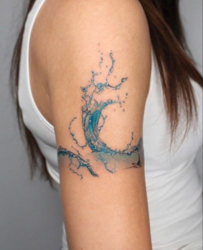 A fusion of water and symbol, this arm tattoo showcases the Pisces sign amidst vibrant blue waves. It’s a bold statement of identity, as profound as the depths of the ocean.
